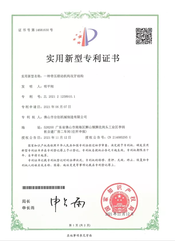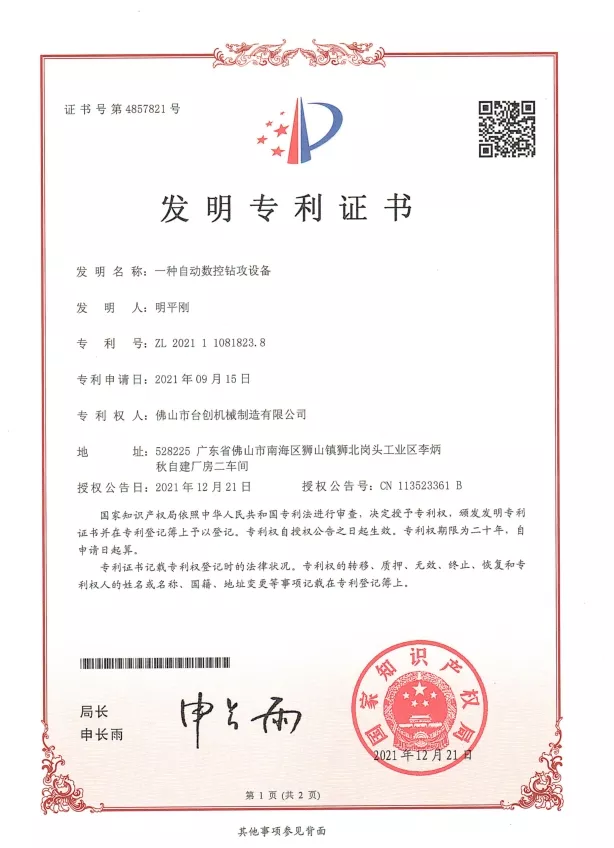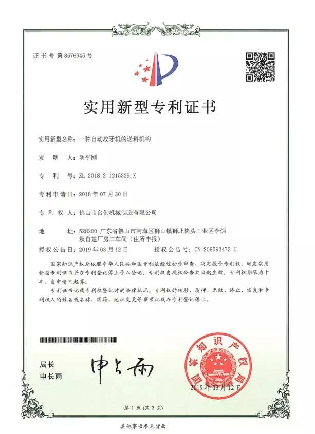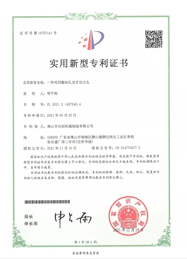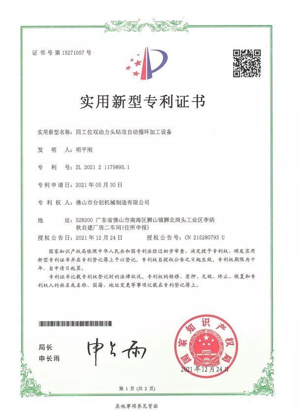 Patenty i innowacje: Posiadamy liczne patenty na technologie naszych maszyn do gwintowania nakrętek, obejmujące konstrukcję mechaniczną, systemy automatyzacji i rozwiązania bezpieczeństwa. Ciągłe badania i rozwój zapewniają, że nasze maszyny zapewniają wysoką precyzję, stabilność i wydajność. Innowacje są stosowane w systemach CNC, serwonapędach, monitorowaniu momentu obrotowego i automatycznej obsłudze materiałów, aby sprostać zmieniającym się potrzebom nowoczesnej produkcji.