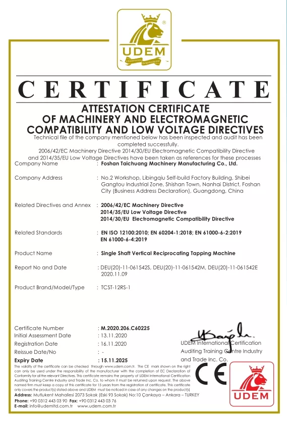 · Certyfikat CE: Zapewnia, że nasze maszyny spełniają europejskie standardy bezpieczeństwa, zdrowia i ochrony środowiska.