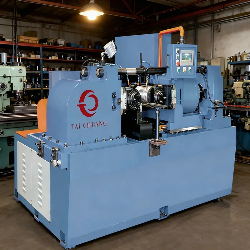 Hydrauliczna maszyna do walcowania gwintów prętów okrągłych wykorzystuje kontrolowaną siłę hydrauliczną do formowania gwintów zewnętrznych na prętach okrągłych poprzez walcowanie na zimno. Proces ten zwiększa wytrzymałość gwintu, poprawia wykończenie powierzchni i zmniejsza straty materiału w porównaniu z metodami cięcia. TAICHUANG pozycjonuje ten model jako stabilne i niezawodne rozwiązanie do wielogodzinnej pracy przemysłowej.